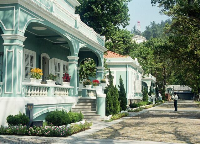This time we headed for the statue of A Ma, high up on top of the biggest hill on Coloane island. At 19.99 metres, she’s a towering structure made of blocks of white jade, and bring a whole new meaning to the word “monumental”. Apparently she can be seen from far out on the South China Sea, which I can well believe. She’s the goddess of fishermen and sailors apparently. A little way down the hill from the statue is a massive new temple complex. It is breathtakingly beautiful, as I hope to prove when my photos come back to me tonight. There are two temple blocks in the middle of the complex, covered in red and gold decorations, with the most amazing roof decorations, including dragons and all manner of other creatures made out of colourful mosaic tiles. There are friezes carved out of a grey coloured stone, and a massive pond full of turtles which seemed to be trying to escape by climbing on each others backs – turtles all the way up rather than down, but you get the picture I’m sure. For 25 patacas (about £2.00) you could buy a tiny turtle and add it to the mass already in there. It was fascinating, as were the two hulking carved stone turtles with some sort of monumental plaques on their backs. They appeared to have fangs… Vampire turtles anyone?