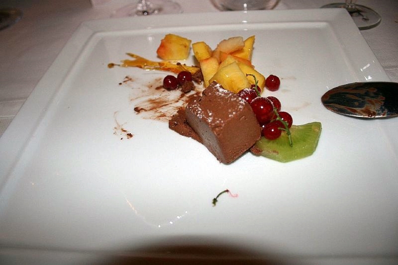 As if that wasn’t enough, it was followed by a different dessert for each of us. All we could do was agree to eat a quarter each and pass the plate on… That meant there was a chocolate mousse…