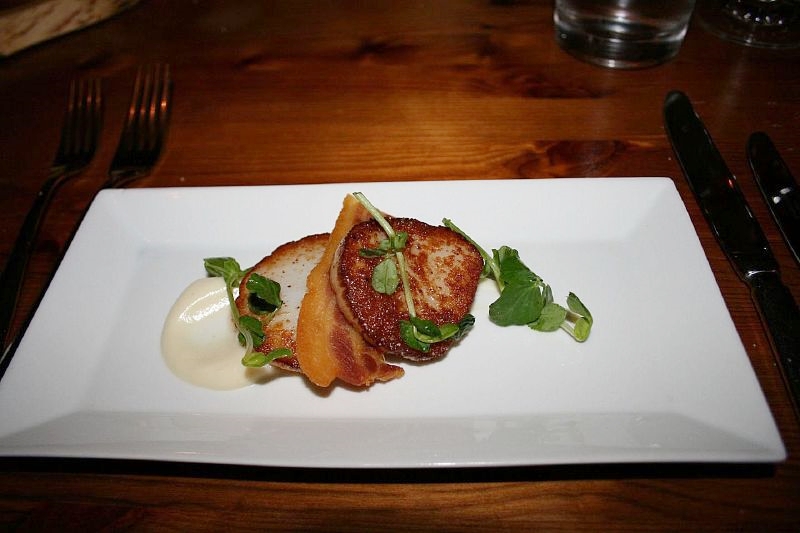 The first of two starters was pan fried sea scallops, with truffled cauliflower puree, and pea shoots: