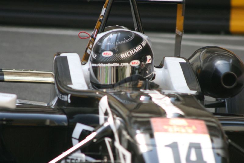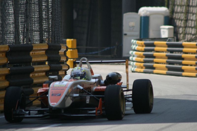 Thursday got off to a good start, not too early, with a trip to the Melco Hairpin to start the day. I like going there for the very first session simply because it’s such fun when the drivers encounter it for the first time. If you don’t get the line absolutely spot on you get stuck against the barrier on the outside, and just to help matters along there’s a nasty bump on the inside that means you’ll have at least one wheel off the ground at a fairly critical moment. As a photographer it’s great because you really could reach out and rap the boys on their helmets as they go round – and if they have clear visors fitted, you can see the whites of their eyes!
