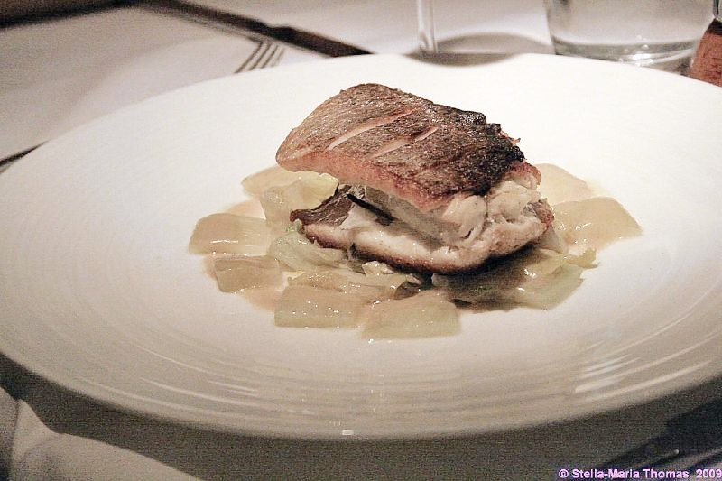 Both were delicious (although the best risotto I have ever eaten is still the risotto Milanese at the Derby Grill in Monza last year), and the whit wine that John and the sommelier chose between them was a brilliant match, sharp and fruity and clean on the palate. By now we were all starting to slow down, but it didn’t stop the waiters bringing more bread – we all tried to resist, knowing there were two more courses to go.
