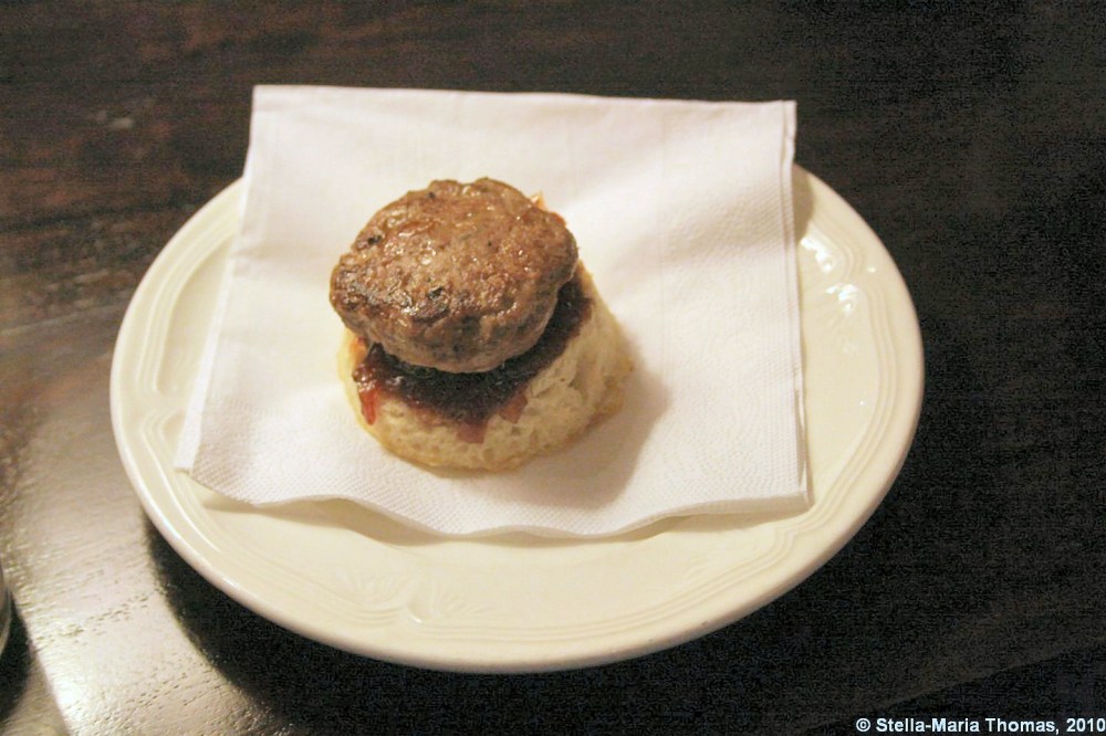 It being appropriate, we opted for the whisky, an Isle of Jura 10 year old number, described as “light and soft with a malty sweetness, oily and flowery on the nose”. It was certainly very smooth indeed and it slipped down a treat, especially when we were presented with the appetiser, a Balmoral venison mini burger, sitting on crisply toasted round of bread, coated in a beautifully sweet chutney.