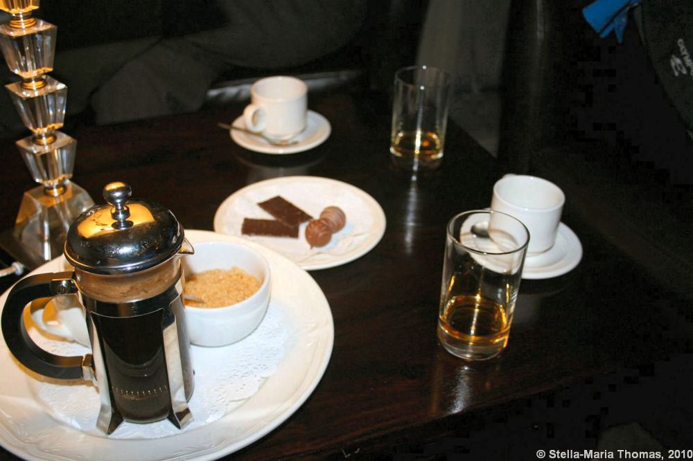 And after that nothing remained but the coffee, chocolates, and one last whisky, this time a Speyside again, a 1993 Cragganmore, a whisky with a “complex, fruity, toffeed style, being mostly from refill sherry casks”, which was the perfect way to end a meal. Lynne liked the Campletown, Springbank 10-year old a lot too.