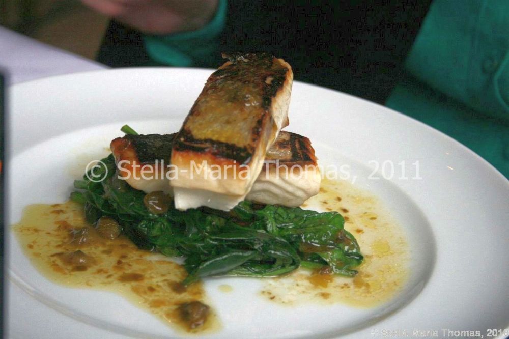 The main was going to be roast beef (it was that or the vegetarian choice) but the starters were eithe a pea and ham soup with a scotch egg, or sea bream with spinach and a lemon and caper sauce. Lynne wouldn’t have the soup, as she hates peas, so she went for the fish.