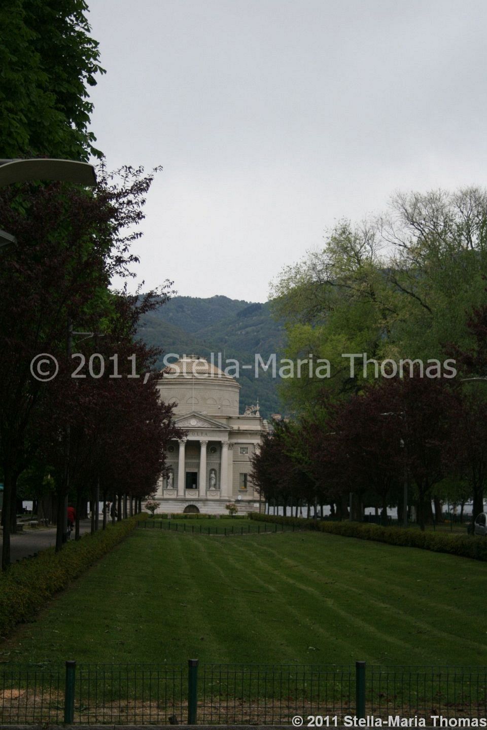 The meeting was now going to be just two days (scaled back from the normal 3-day meeting with testing the day before) so we basically had two days at leisure in Italy. Oh dear! What a shame… whatever would we find to do?! Thursday we got up late, ate breakfast and stared out of the window at the weather. It was grey but looked to be clearing – we had plans for all sorts of weather, and all being well we’d planned to drive to Lake Como and pootle around the lake a while. An hour later and we’d parked up and wandered down to the lake front. The plan was to get some lunch and then maybe take a boat trip, but there was also the matter of the funicular to Brunate, above the town which looked as if it might bear scrutiny too. We started at the Volta Temple, dedicated to Alessandro Volta, and apparently containing the battery he invented.