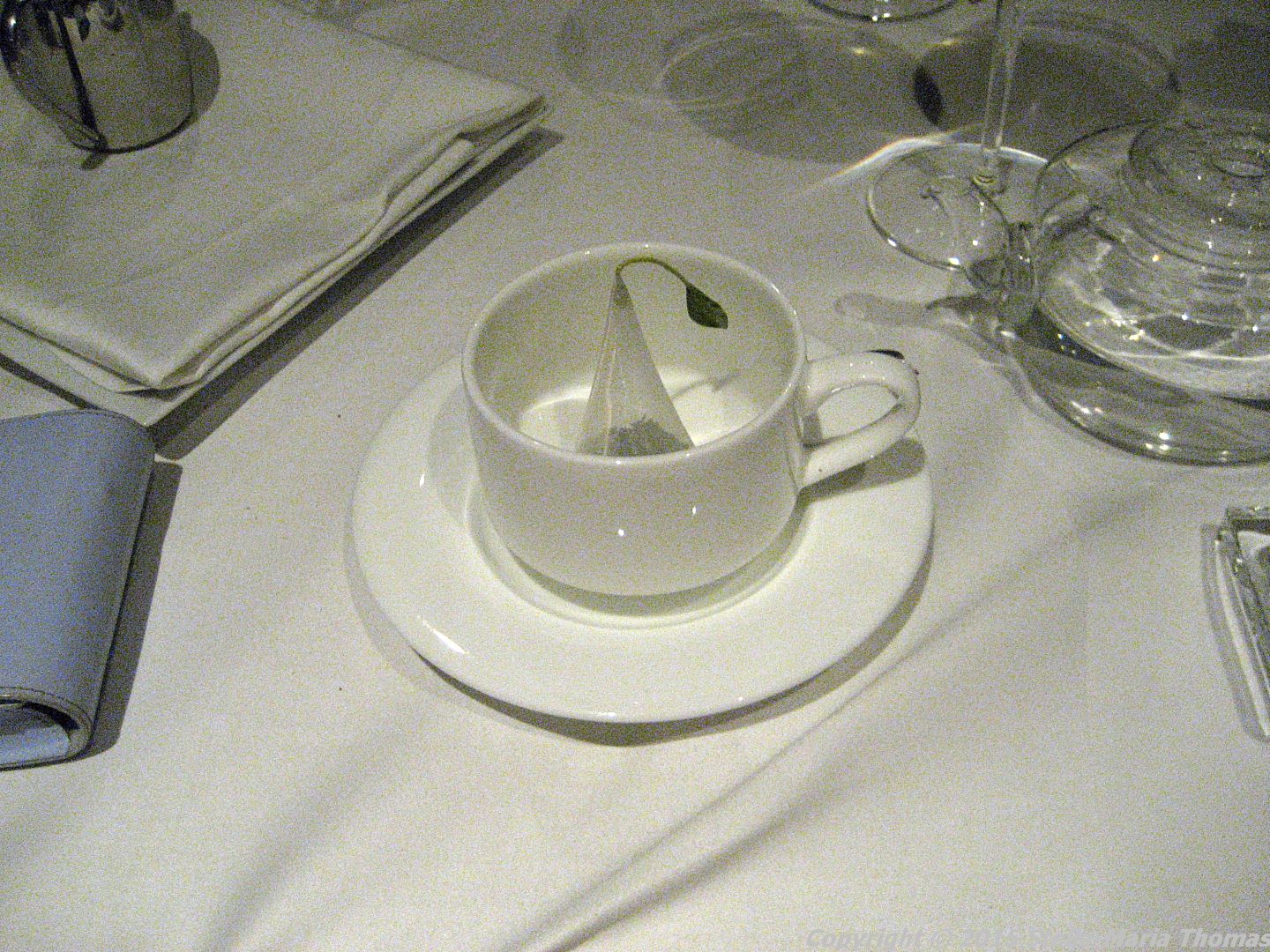 The next course brought a touch of the dramatics with waiters appearing with tea-pots containing tomato tea (produced by putting tomatoes in a muslin bag, hanging them up for 36 hours and letting the juice drip out then warming the resulting essence of tomato).