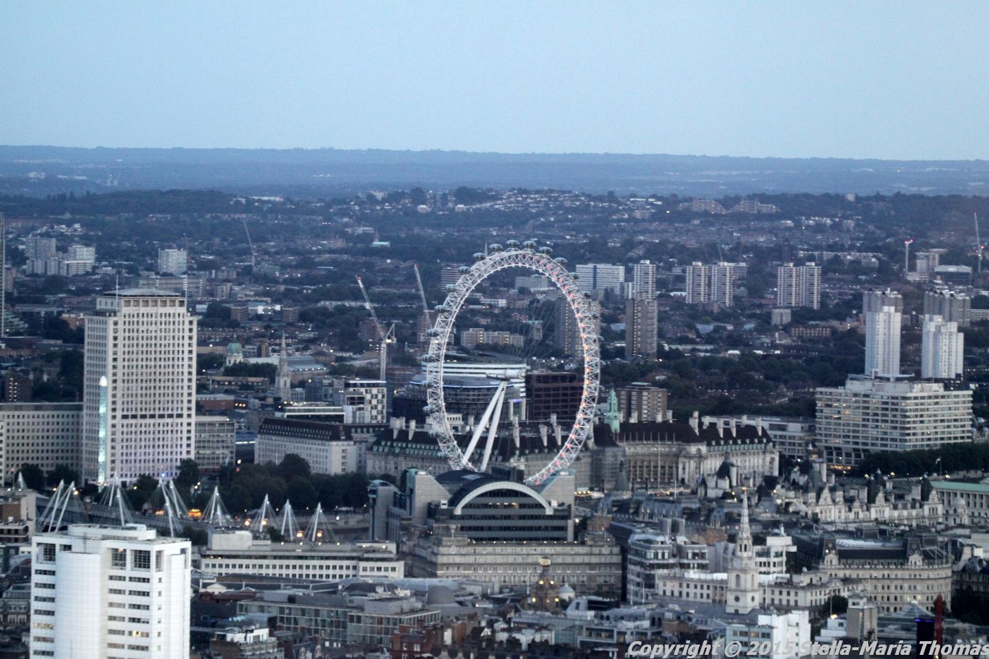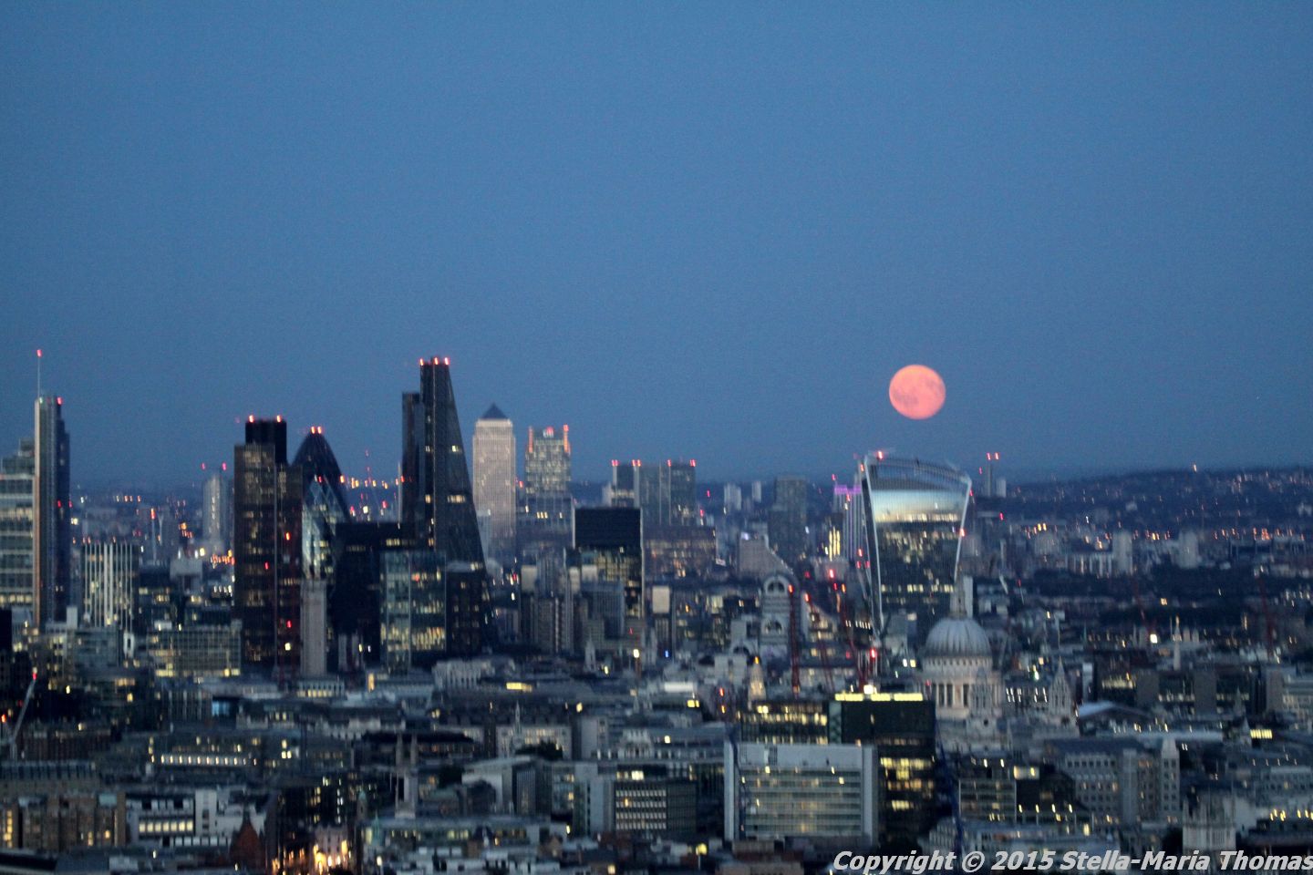 By this time it was getting quite dark and the lights were coming on all over the city and in the City as well, making for a magical show as the Moon came up as well.