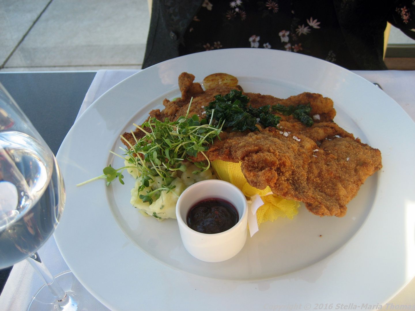 dachgarten-restaurant-reichstag-breaded-veal-schnitzel-potato-leek-salad-roasted-la-ratte-potatoes-wild-cranberries-berlin-007 Posted by Stella on 23/12/2016