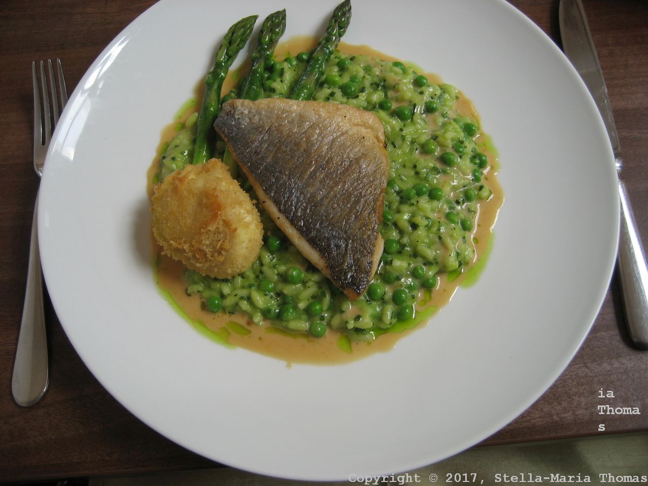 RASCILLS, SEA BREAM, PEA RISOTTO, CRISPY EGG, ASPARAGUS 007