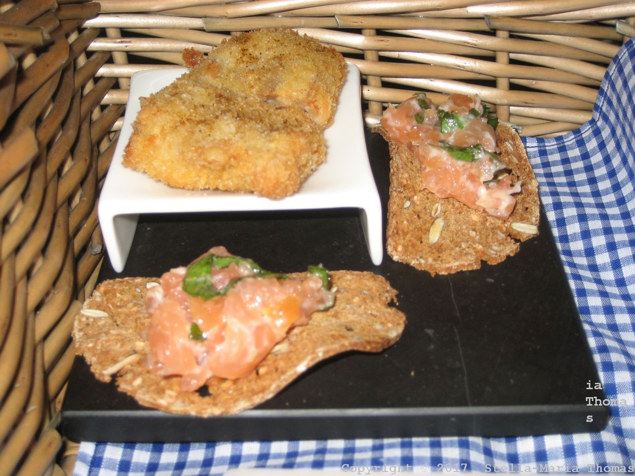 WHITES, CANAPES, JERK CHICKEN, SMOKED SALMON ON RYE TOAST 005