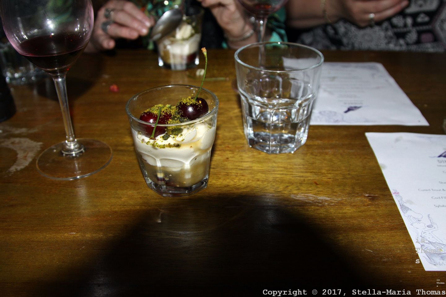 LONDON SHELL COMPANY, SYLLABUB WITH GOOSEBERRY COMPOTE AND PISTACHIO 037 Posted by Stella on 28/06/2017