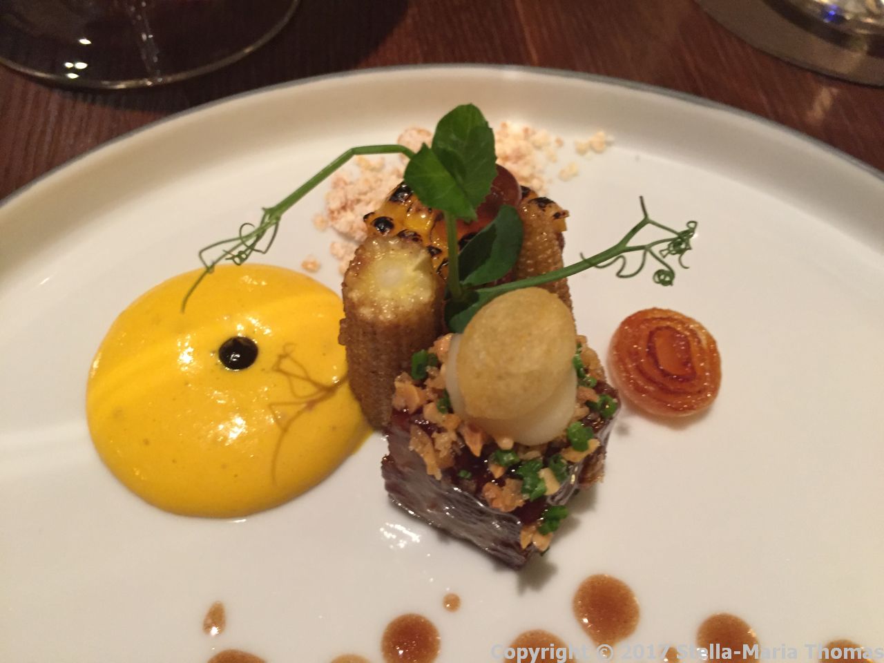 VICTOR’S FINE DINING BY CHRISTIAN BAU – LUMA BEEF, SIRLOIN BBQ AND OXTAIL, CORN STRUCTURES, BLACK GARLIC 028 Posted by Stella on 22/10/2017