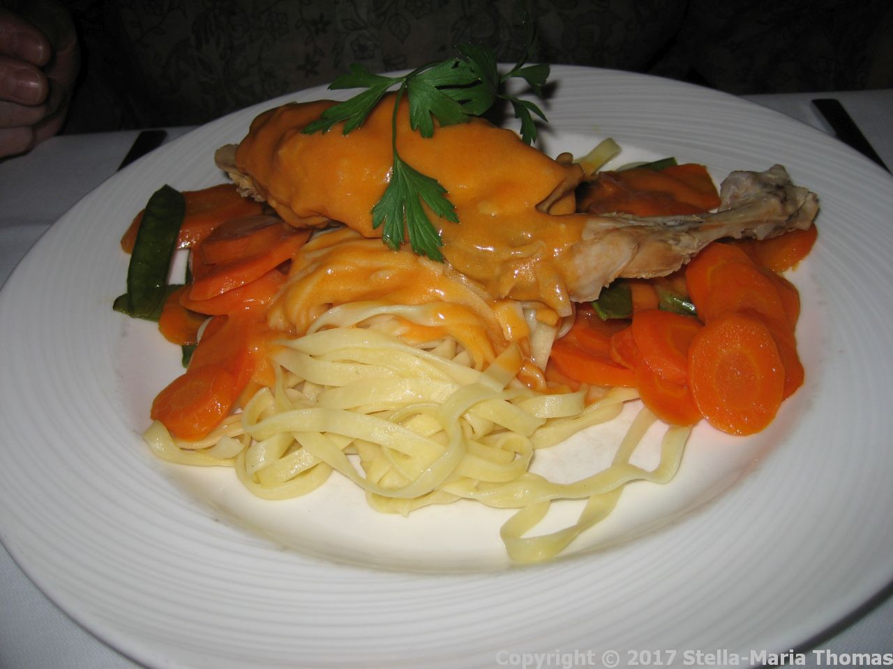 BRASSERIE – RABBIT WITH NOODLES, SAUCE, SUGAR SNAP PEAS AND CARROTS 009 Posted by Stella on 03/11/2017
