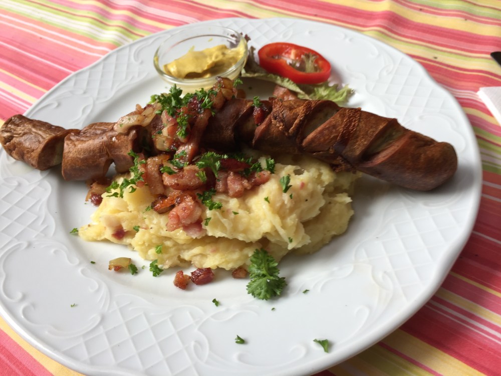 We also shared a portion of Grawes with a massive bratwurst. Grawes is basically mashed potato and sauerkraut combined, with added speck (very fatty bacon). It’s not exactly a slimmer’s meal but it’s very, very tasty!