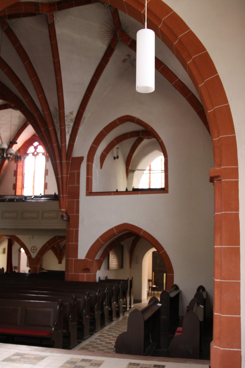 The church itself is also of historic interest with it’s rare twin choir. The first historical mention of a church here is in 1330 when it was extended by the Count of Sponheim, and the right hand side choir was founded as a county burial chapel in 1379.