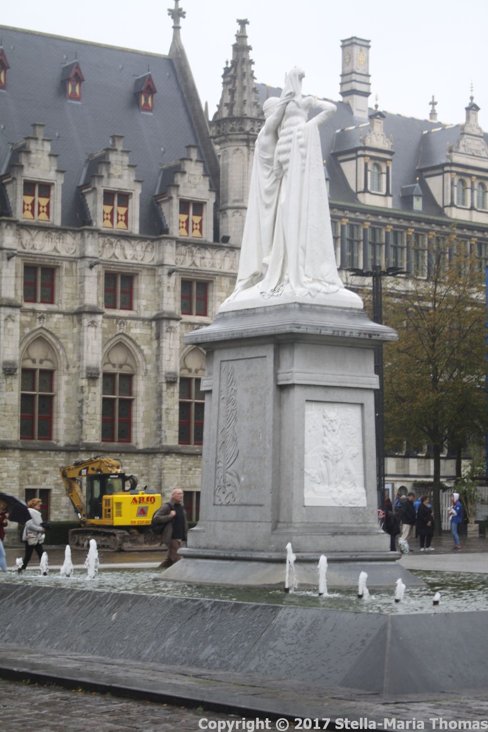 From there we dropped into one of the supermarkets, Delhaize being the one I will always go to. We usually do this because you can buy things like white port at very sensible prices. We had room for a half dozen or so bottles and so we stocked up without delay, filled the fuel tank at the first possible opportunity and then headed out onto the motorways. My intention was to get the other side of Brussels and then, if we had time, take a lunch stop somewhere, maybe with some sightseeing thrown in. Getting past Brussels can be something of a nightmare, but for once it wasn’t too hard. The trouble in fact started when we hit the other side, the rain started to fall heavily, and the road seemed to fill with complete idiots. Eventually, realising we had plenty of time in hand, we pulled off the motorway to get away from the homicidal Belgian drivers, and made for the centre of Ghent. We clearly weren’t going to be able to do justice to the place, but we did walk down towards the centre, enjoying the historic buildings and the odd goings on.