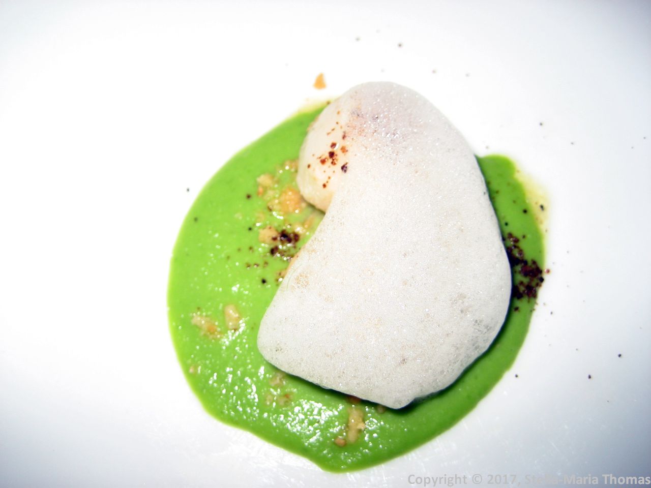 WENTZL, SCALLOPS, GREEN PEA SAUCE, PUMPERNICKEL POWDER 007