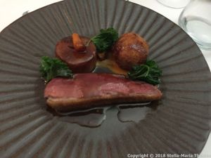 HIBISCUS, ROASTED DUCK BREAST, CONFIT DUCK BONBON, PUMPKIN, KALE, FIVE SPICE AND HONEY JUS 007 Posted by Stella on 21/02/2018