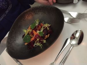 HIBISCUS, ROASTED HERITAGE BEETROOT, RED ONION MARMALADE, STILTON, WALNUT 004 Posted by Stella on 21/02/2018