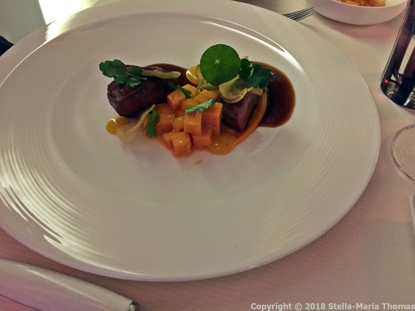 BLUE BAY, MONACO, SAUVAKE DUCKLING, SWEET AND SOUR SAUCE WITH HONEY AND TIMUT PEPPER, SWEET POTATO, MANGO, LEEK 011 Posted by Stella on 25/02/2018