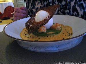 CHATEAU D’ETOGES, POACHED EGG ON SPINACH ROYALE, CREAMY CRAYFISH SAUCE 007 Posted by Stella on 29/05/2018