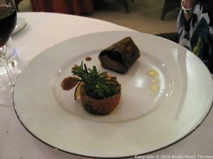 CHATEAU D’ETOGES, MENU GOURMANDE, CRISPY LAMB FILLET WITH HERBS, CONFIT AUBERGINE, TOMATO FONDUE 009 Posted by Stella on 29/05/2018