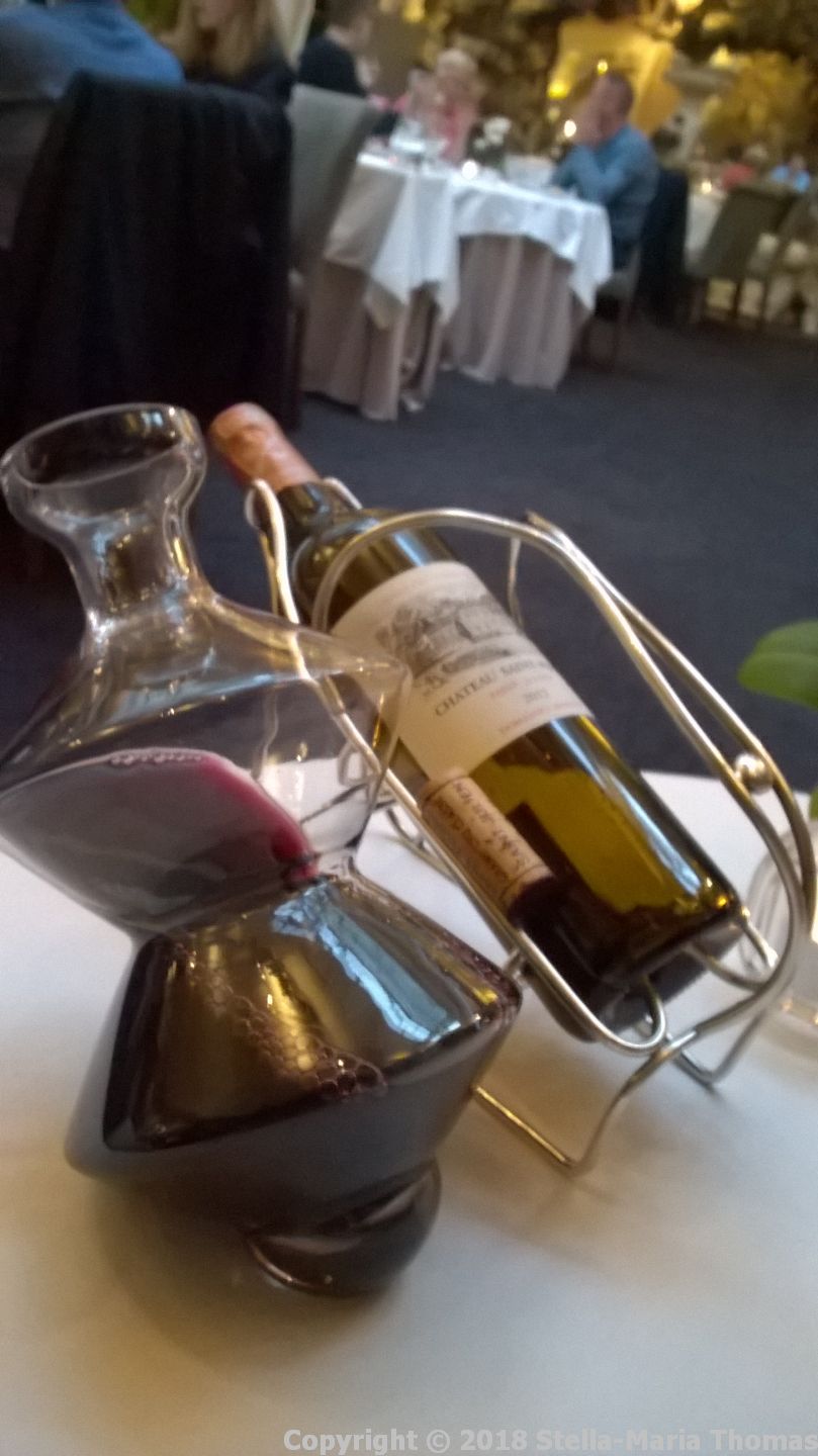 Anyway we were soon seated and studying the menu, while also considering what to drink. The charming sommelier, Leagh Barkley, and his Brazilian sidekick helped us negotiate what is a considerable list, which was how we ended up ordering a €110 bottle of Saint Julien as recommended, and decanted, by the lovely Guilherme Braga Silva.