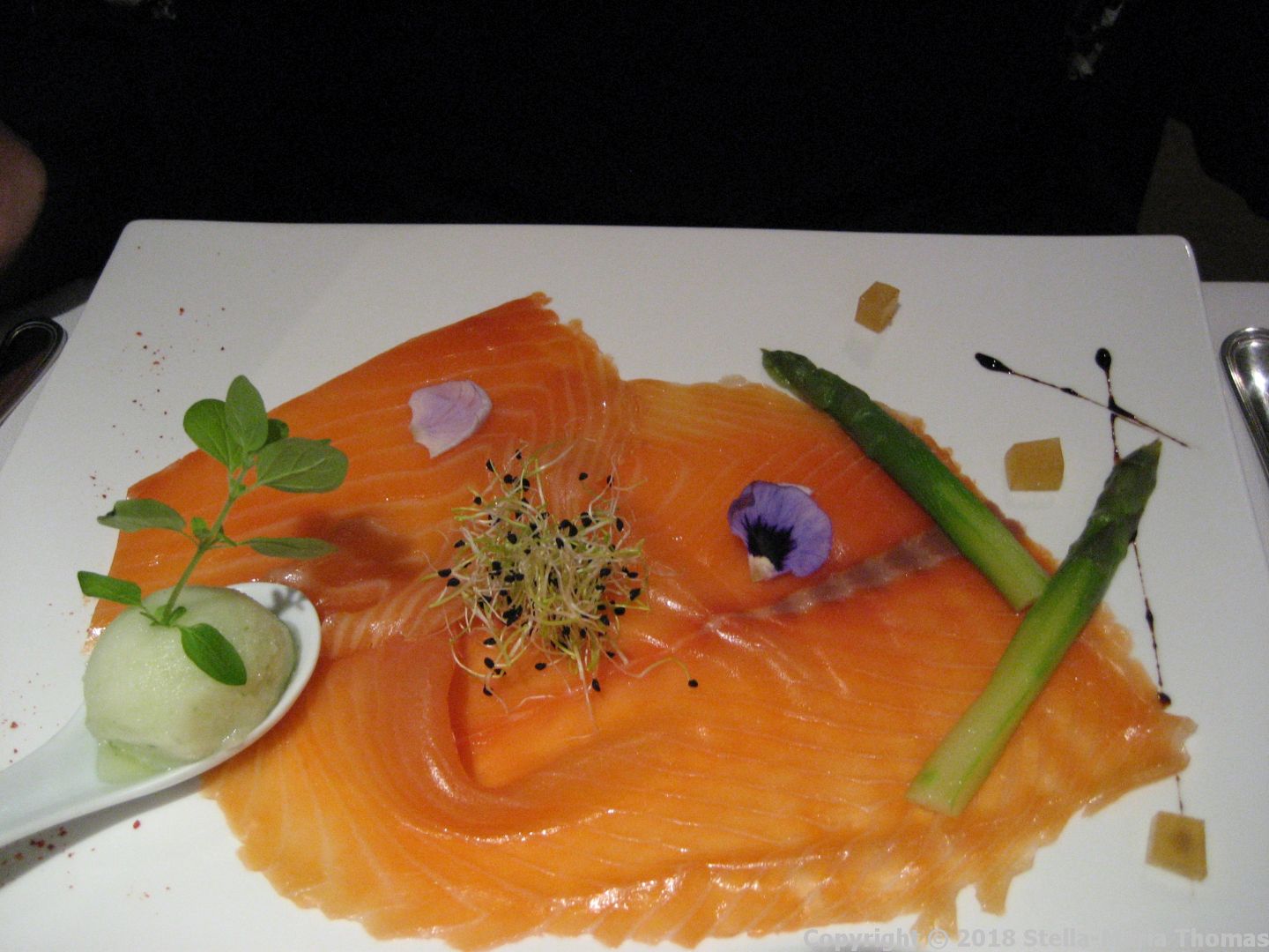 MARC DESTRADE, PAU, GAMBAS, SAUMON FUME CASTEIGT, SORBET CITRON VERT BASILIC 005 Posted by Stella on 04/06/2018