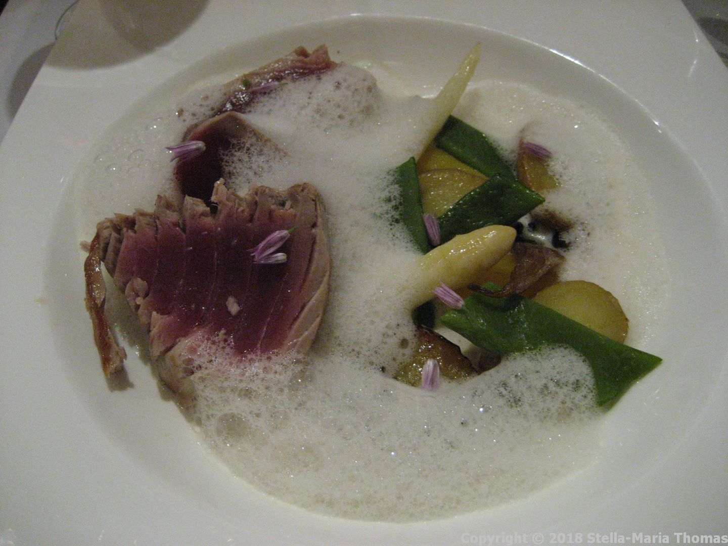 L’ARDOISE, PAU, THON, LEGUMES DU MOMENT ET EMULSION DE COQUILLAGES 005 Posted by Stella on 04/06/2018