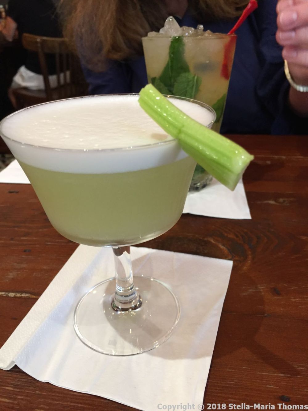 In London on a boiling hot day for a trip to the theatre (of which more elsewhere), we were at a bit of a loss as to where to go between the show ending and our dinner reservation nearby. A stroll north from Saint Martin’s Lane took us towards Seven Dials and as we passed an open window I saw a board on the back wall of the establishment offering a cocktail of the day, a raspberry margarita. This turned out to be Balans Seven Dials Café, and the welcome we got when we walked in and asked whether we could just settle in for a couple of drinks was enough to make us feel right at home. The cocktail list was short but interesting and so we started out trying some of the more adventurous sounding options.