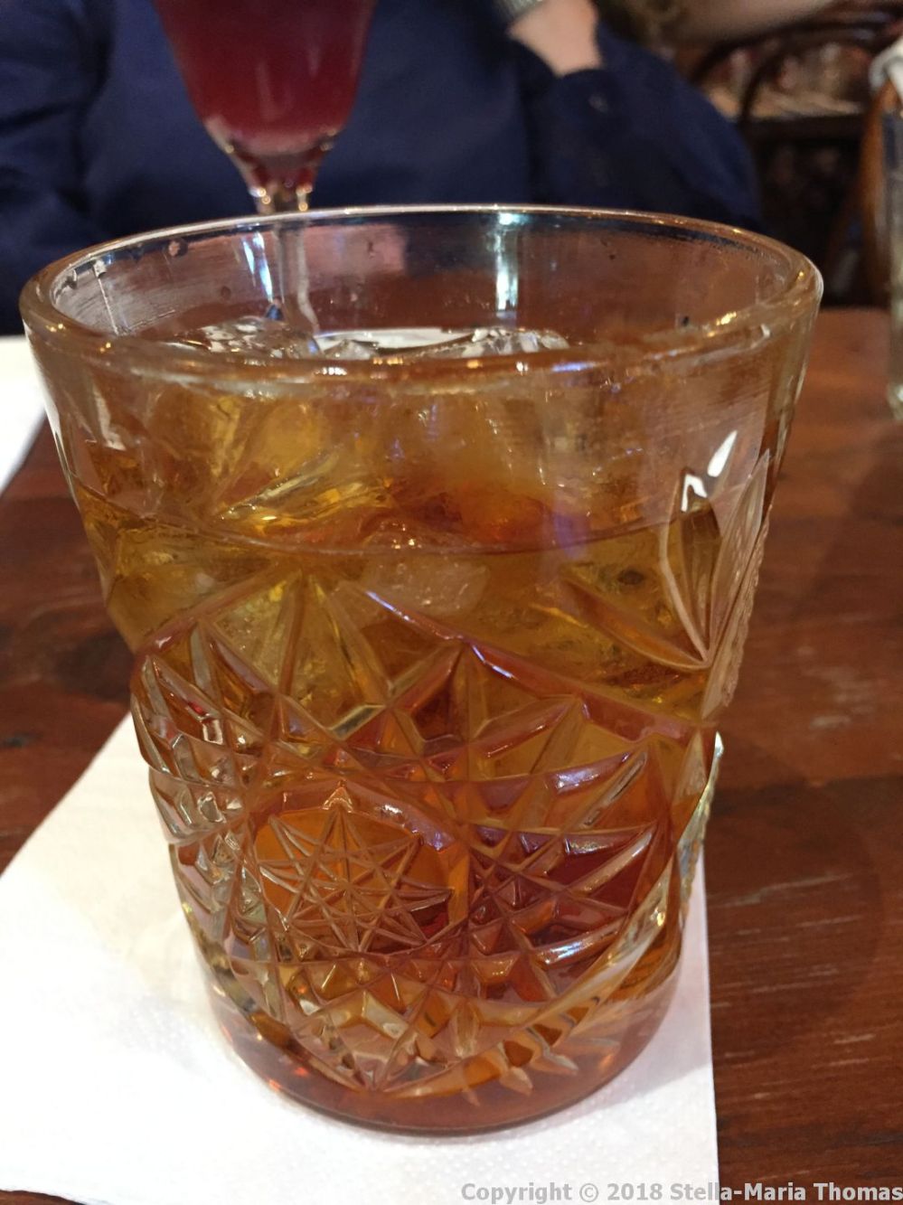 This was a mix of Southern Comfort Black, Benedictine, and truffle oil, and yes, it does sound peculiar. However, as I was on a promise of a replacement if I really didn’t like it so I really didn’t feel I’d got anything to lose. And I liked it. There was the slightest hint of cough medicine lurking in the background, but it was enjoyable enough that if we’d not had to move on, I’d have had a second one.
