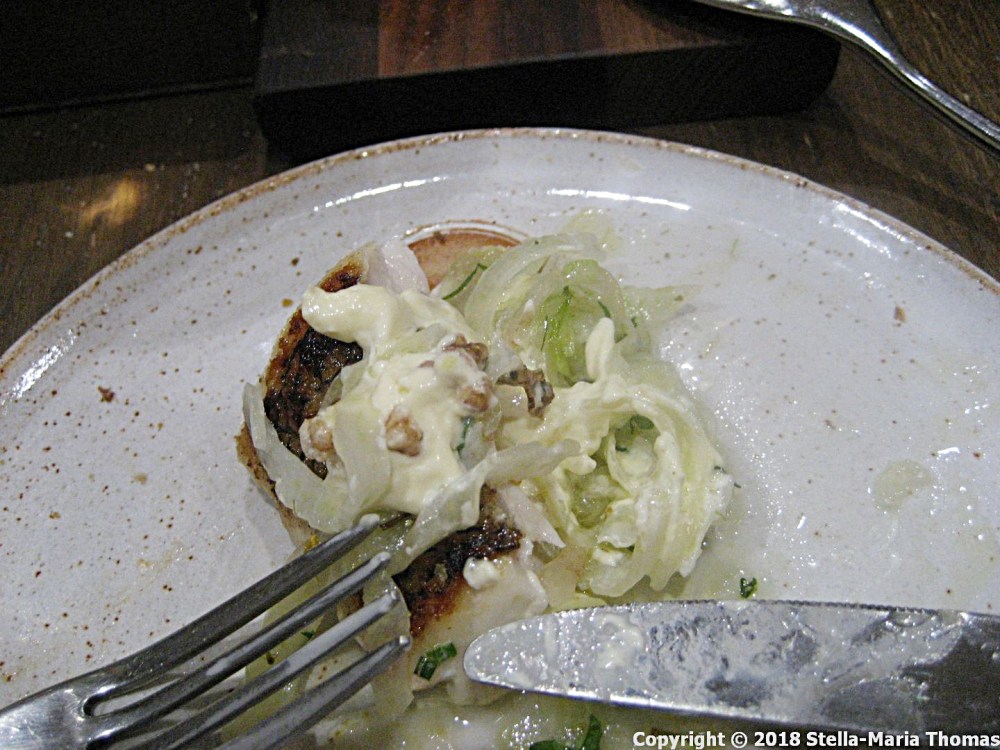 Our drinks finished we headed off over the river, seeking out Skosh, an establishment on which much praise has been heaped since it opened around a year ago. Jay Rayner, a restaurant critic I admire, and with whom I’m normally in agreement, raved about it, as have others. With that in mind I booked a table well in advance because I really didn’t want us to miss out.