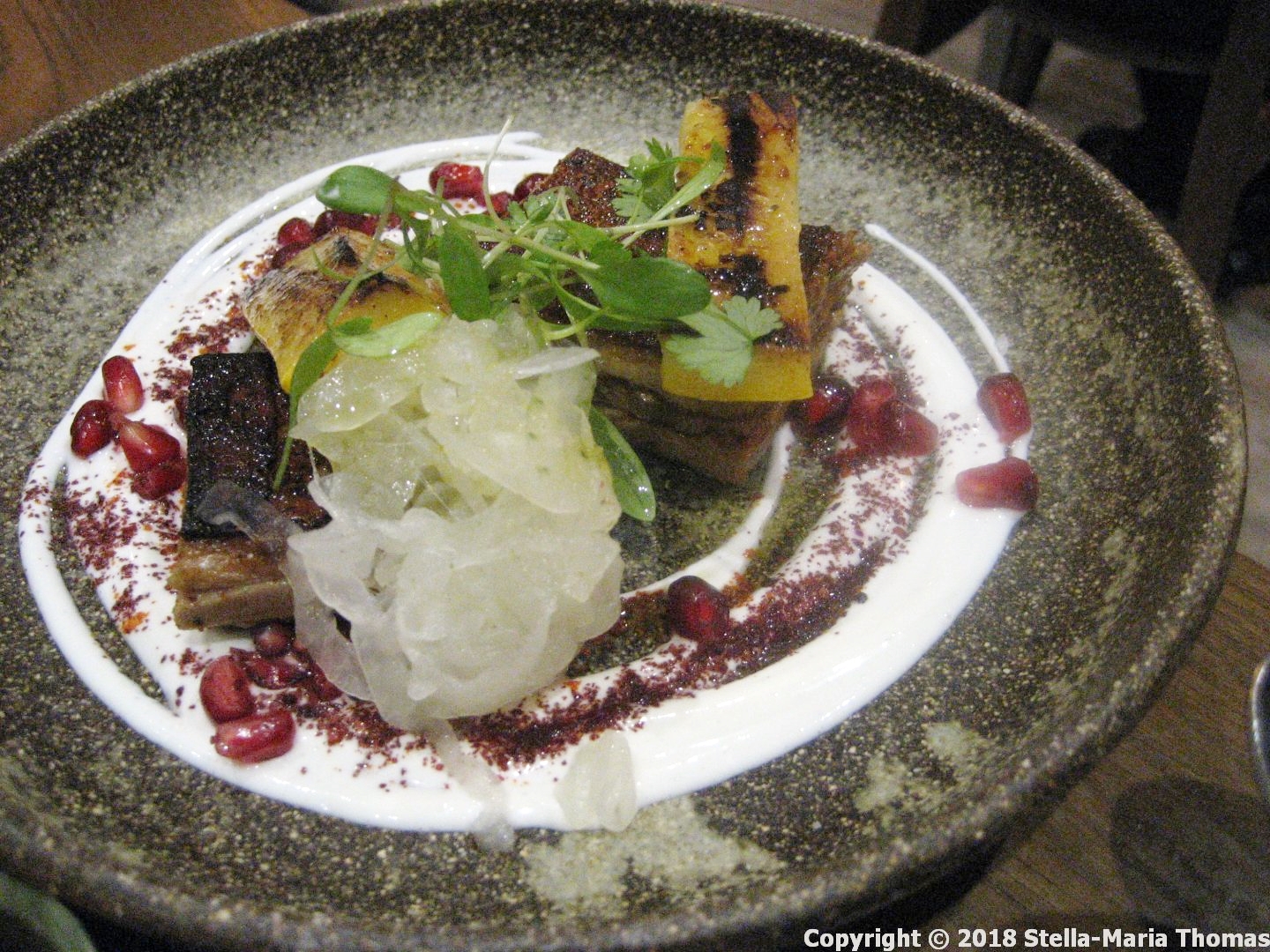 SKOSH, CRISP LAMB BELLY WITH COURGETTE, PICKLED ONIONS AND POMEGRANATA 017 Posted by Stella on 11/07/2018