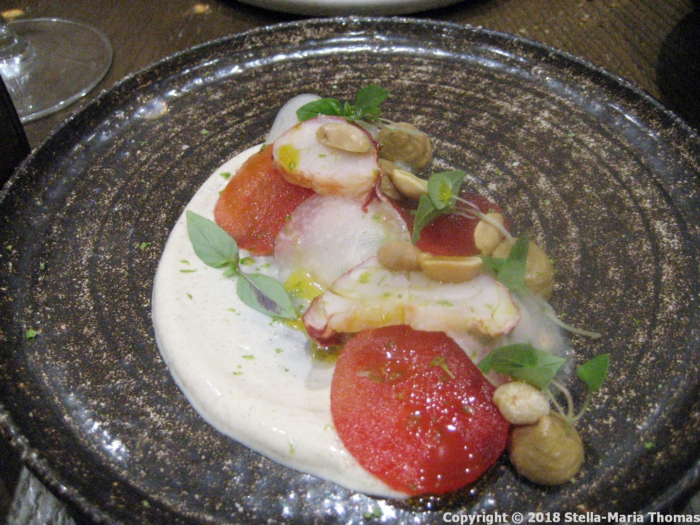 SKOSH, EAST COAST LOBSTER, MARINATED KOHLRABI, SATAY AND WATERMELON 014 Posted by Stella on 11/07/2018