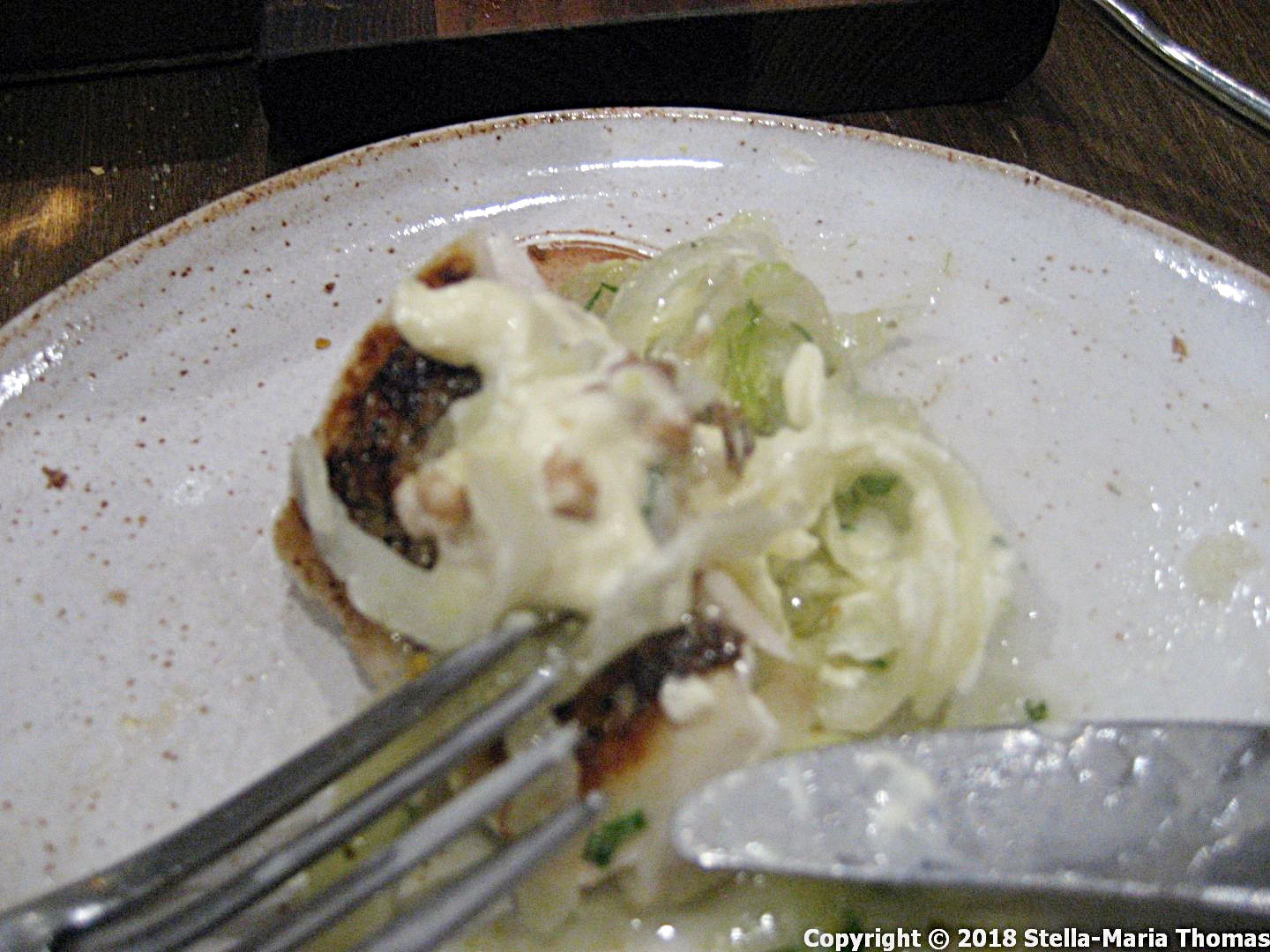 SKOSH, HAKE WITH PICKLED LEMON AND GREEN CHILLI AIOLI, SORREL AND FENNEL 011 Posted by Stella on 11/07/2018