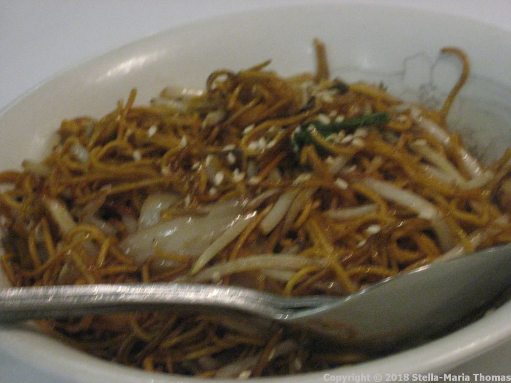 We chose just two main dishes even though these are not enormous. I did also request the noodles with bean sprouts, even though I’m the only one of us who really likes them. They are somewhat oily, but the bean sprouts usually have a good crunch to them and I enjoy the contrast in textures, as well as the slightly fierce spicing that goes on.