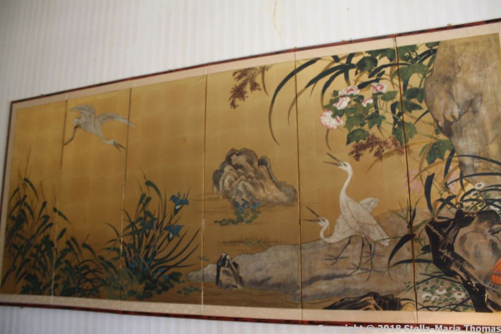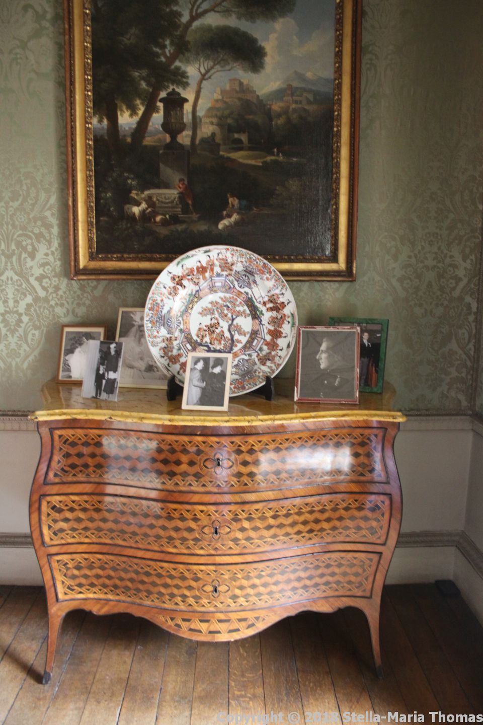 Also on display is a spectacular Coromandel screen, which is a 17th century Chinese lacquerware screen, unusually made for the Chinese domestic market not for export, and is one of a handful of such items now left in the UK. It would likely have arrived in the UK along with the newly popular pursuit of tea drinking in the 17th or 18th century,, and depicts a famous gathering of scholars in the garden of the Emperor’s son-in-law in the 1100s. Half of it is apparently missing, with just six panels remaining, but as it was not uncommon to cut down Coromandels to create other pieces of furniture, it’s more remarkable perhaps that half of it has survived. It’s even more remarkable that it’s still intact now, having been bought to hide a toilet door from guests by Lady Iliffe. It had started to deteriorate because of the conditions in the cloakroom, but is now on display and undergoing restoration. It’s really spectacular!