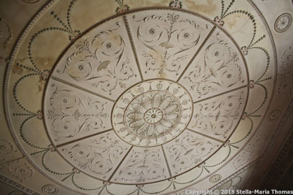 Anyway, reaching the house it was soon apparent that it’s an interesting structure, very much the picture of Palladian symmetry, which I think is pretty rare. Most houses have had bits added on (or removed), and so they don’t have quite the precise frontage that Basildon Park manages. The estate was bought by Francis Sykes, who had made a fortune in the East India Company, and it was he who demolished the house that was already there and had John Carr, the architect, build him a new one. Most people who know Carr’s work won’t be surprised by the style, but the location is unusual; he didn’t normally work outside Yorkshire and its immediate vicinity. As a Yorkshireman himself, Sykes managed to persuade Carr out of his normal geographical comfort zone, and work began on the house, though it was not completed in Sykes’ lifetime, which presumably didn’t help his political ambitions, given that he’d bought the estate because he required a house suitable for entertaining that would also show off his at this point considerable wealth and that was close to London. He wasn’t alone; many rich returnees from India settled in this part of Berkshire, so much so that it became known as “the English Hindoostan”.