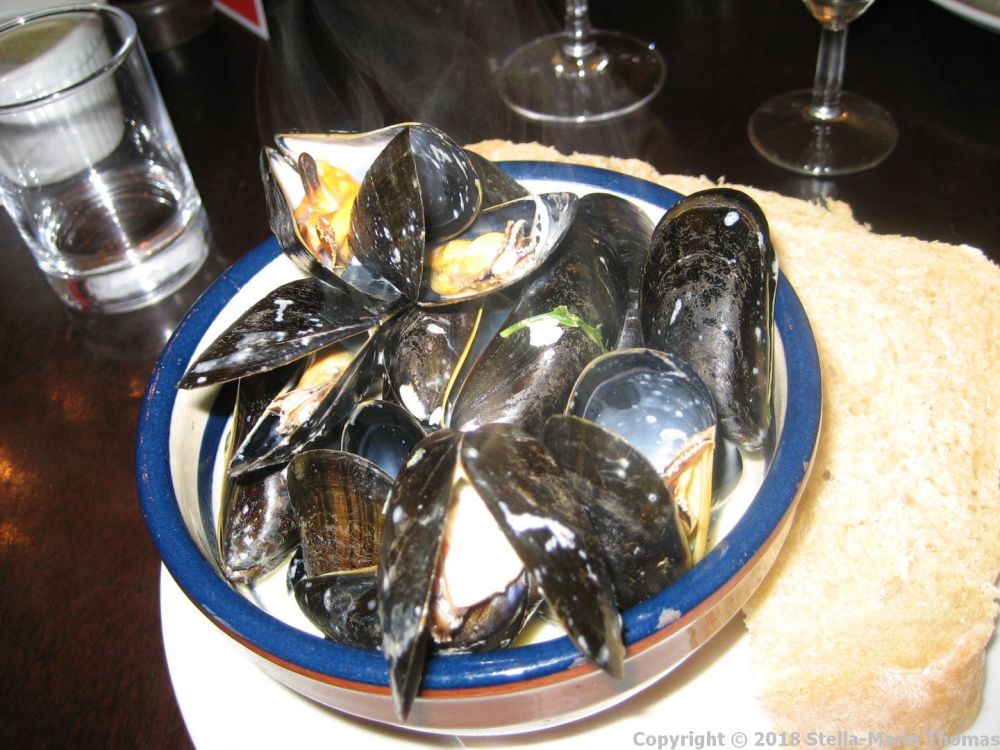 I ordered the rope grown mussels in white wine and cream, which was just right, exactly how I would expect moules mariniere to be, all garlicky and with plenty of lovely liquid to mop up with the soft brown bread that was supplied. I was also supplied with a bowl of water to clean my fingers in, much needed after I’d extracted all the lovely little bivavles from their shells ready to slurp down.