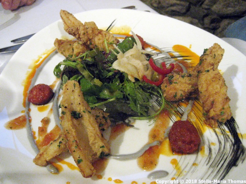 Lynne ordered the salt cod fish cake, which was small but perfectly formed, and came with some crispy croutons, and a couple of spoonfuls of brandade. As I say, different options. We shared the two starters between ourselves and our friend G who was dining with us en route to the weekend’s Shelsley Walsh hillclimb event.