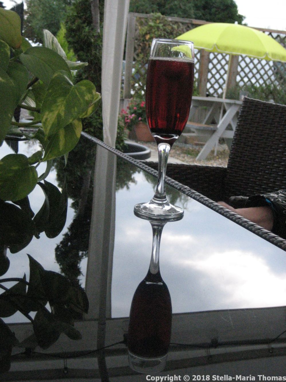Anyway, as soon as the roadworks were over I cracked and booked a table. On arrive we were slightly too early and it was still hot and sticky so sitting out on the front terrace to drink an aperitif seemed like an excellent idea. The kir royale that was produced was certainly an excellent idea, even if I did get fixated by the reflection in the table top for rather more time than a non-photographer would think was reasonable.