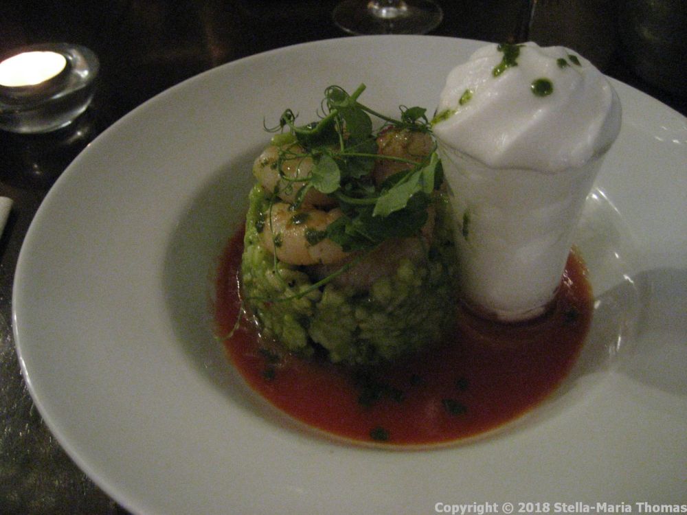 Alongside it we shared a portion of tiger prawns, with a frothy “meringue”-like accompanying pea foam and a pea risotto. Lovely, summery flavours and perfectly cooked prawns. It was clear to us that there’s a level of competence and ambition in the kitchen that goes some way beyond that of your average gastro-pub.