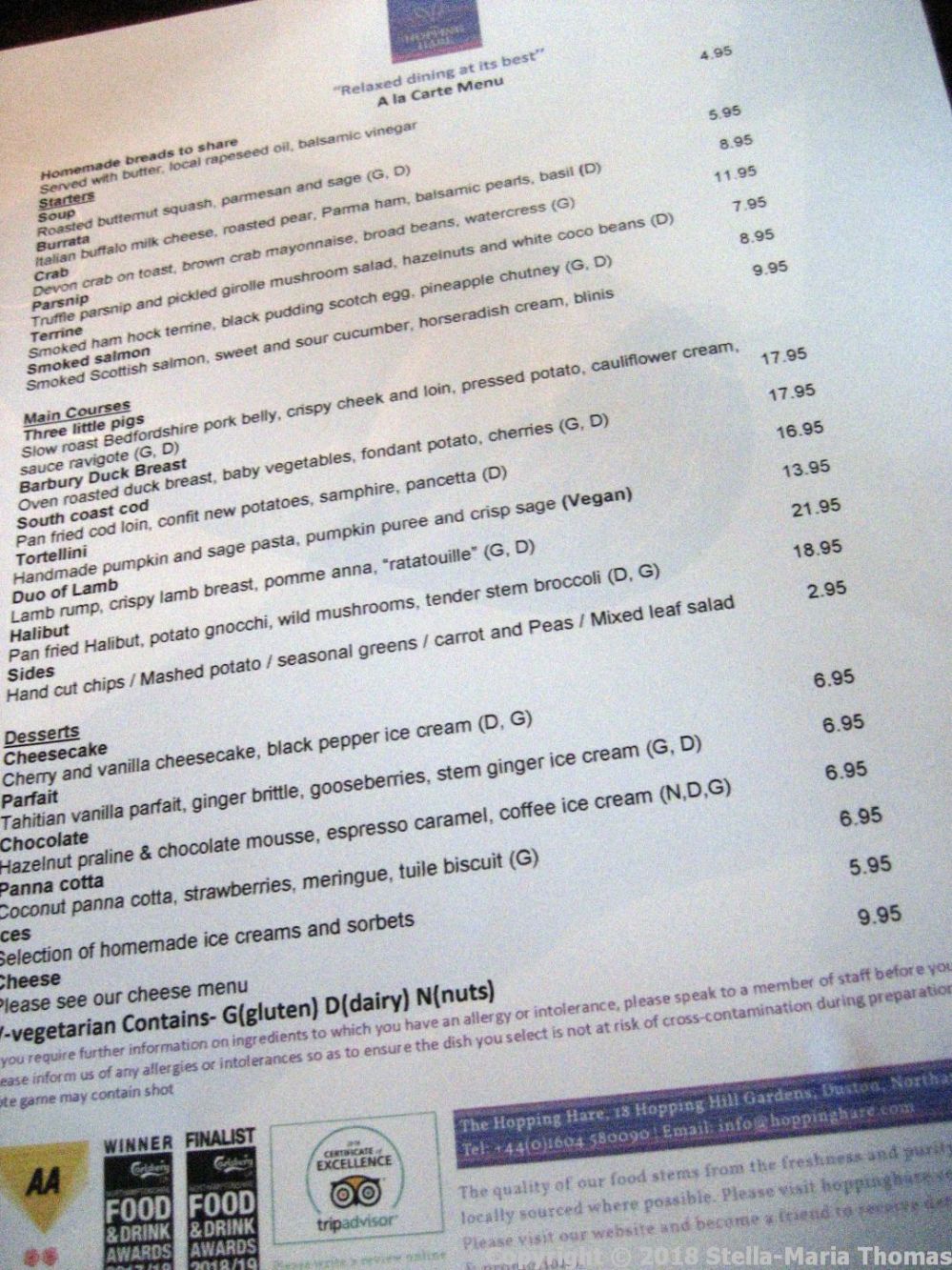 This was one we’d been meaning to try for a while, having heard good things about it on the grapevine. There was a rumour the chef had once worked at the late lamented Roade House, and that he was in good form here. We were keen to try it out.