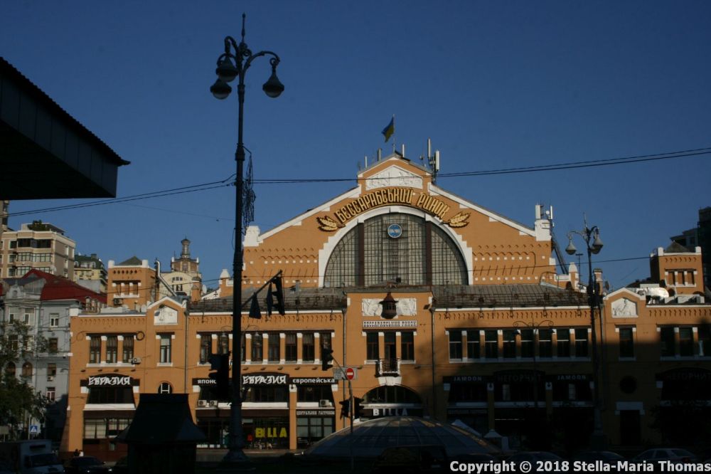 We were heading initially for the Besarabsky Rynok (Бесарабський ринок) market hall because I wanted to take a look at it, and I know my colleague, A, likes that sort of thing too. It’s fabulous even at the tail end of the working day, and there are plenty of things to buy (including caviar which I don’t care for). In fact the caviar sellers seem to be very keen on engaging with you… I wonder why! It’s quite sizable, and was built between 1910 and 1912 to a design by the Polish architect Henryk Julian Gay, and is named after Bessarabia, claimed by Russia during the Russo-Turkish Wars and now part of the Odessa oblast. It has massive high ceilings…