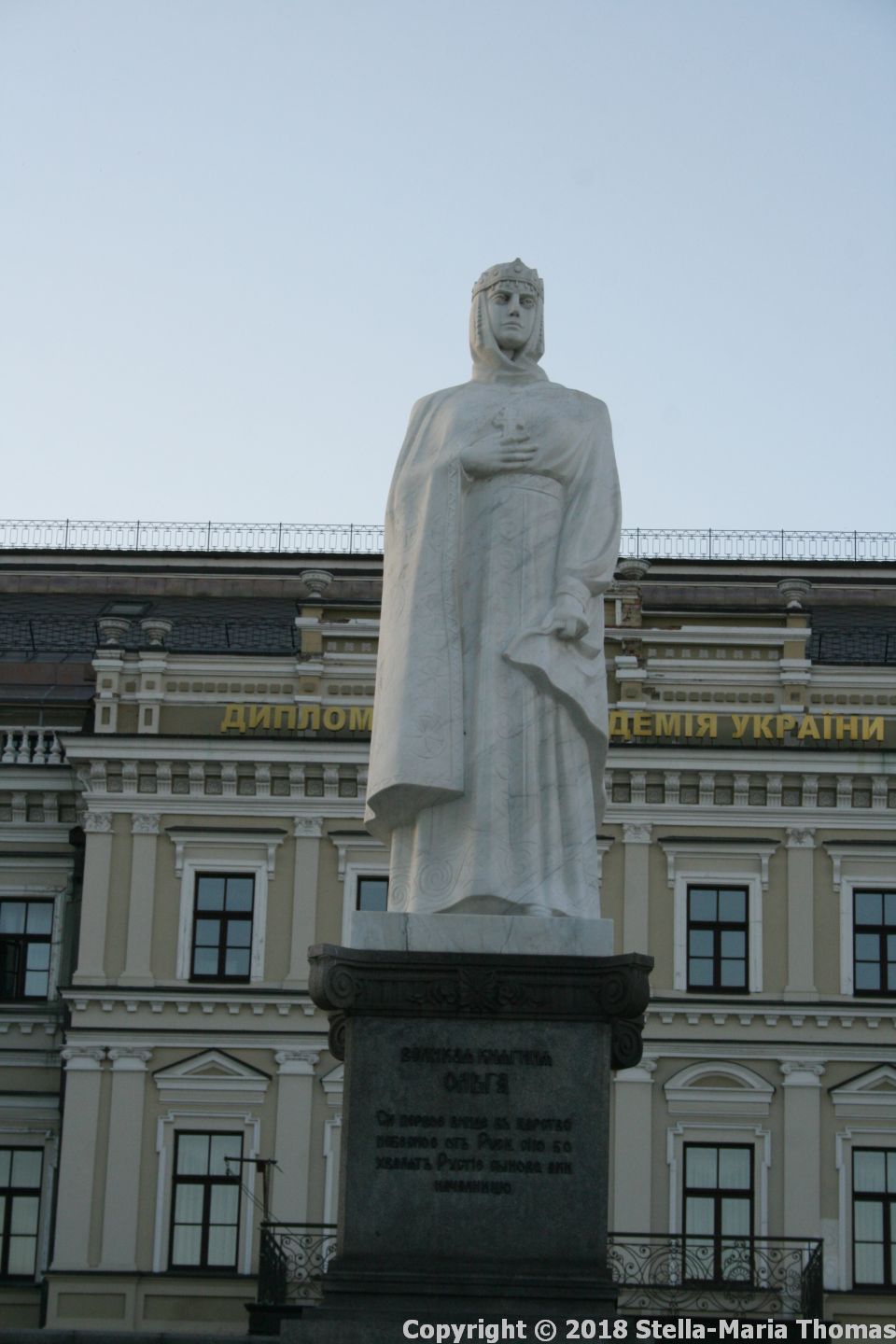 Further along we stumbled across the monument to Saint Olga (Ольга), the grandmother of Volodymyr, whose cathedral we had just seen. As Princess Olga she was Regent of Kyivan Rus’ for her son Svyatoslav from 945 until 960. The sculpture shows her flanked by Saint Andrew the Apostle, and Saints Cyril and Methodius (missionaries to the Slavic peoples). Olga was the first Christian ruler in Kyiv and was baptised in Constantinople, though the dates are somewhat fuzzy. The monument itself, which dates from 1911, was removed by the Soviets and buried under the square in which it stands, and was restored in 1996, though using a copy of the statue of Olga. It was originally intended to be part of “The Historical Path” which would have been an alley of statues illustrating the history of Kyiv.