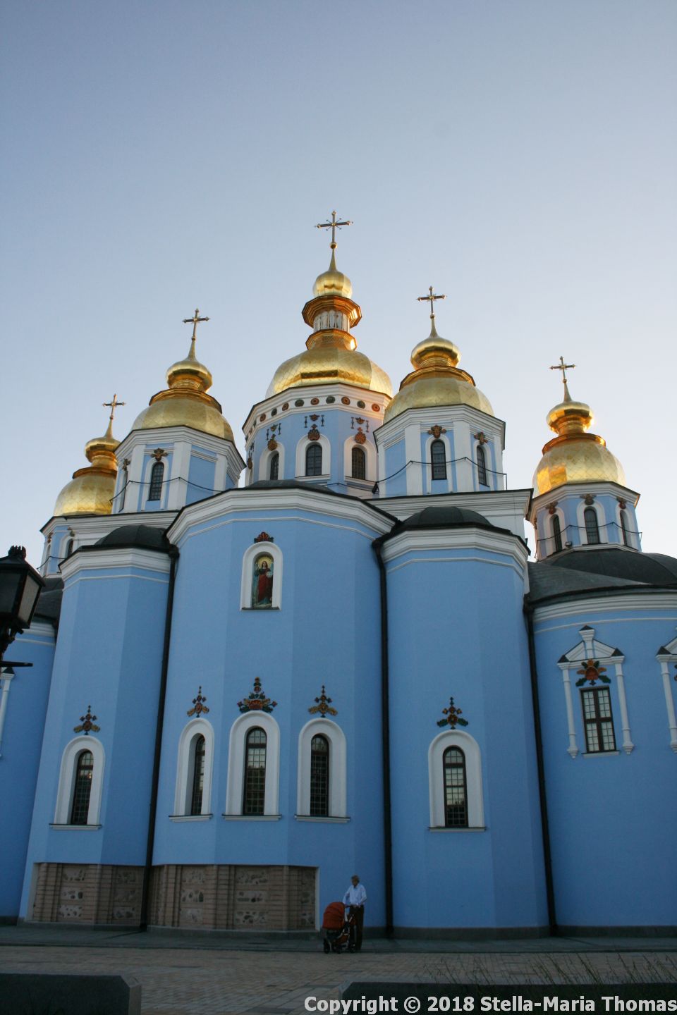 From here we crossed the road to take a look at the beautiful blue church we had spotted on the first day. This turned out to be the recreated Saint Michael’s Cathedral (or Monastery). There has been a monastery here since the 11th century, founded by Prince Isyaslav of Kyiv. It was his son, Sviatopolk (or Michael) who had a new stone church to Saint Michael built in the monastery precinct in 1108. With its golden roofs it was unsurprisingly known to all and sundry as St. Michael’s Monastery of the Golden Domes. It was added to, and decorated over the centuries, but in the 1930s the Soviet People’s Committee had the bell tower and several other buildings demolished, blowing up the monastery in 1937, leaving behind nothing but a pile of rubble. Between 1997 and 2000, post the fall of the Soviet Union, it was completely rebuilt and it looks incredible.