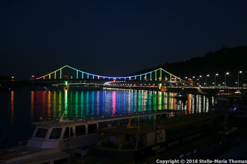 The Chernobyl museum is down here, but again we were far too late to go in. And we needed a beer. We chose a cafe that looked promising and sat out on the terrace watching the world go by. Shortly afterwards we noticed that there was some sort of light display being played out on one of the bridges.
