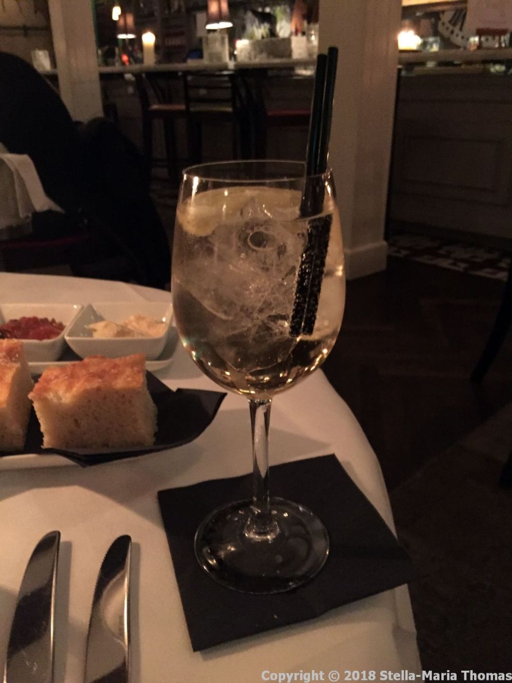 The weather outside was hardly summery, but I opted for that most summery of cocktails, a Hugo. It duly arrived and was just what I needed to lighten the evening after I’d walked round in circles for a while trying to locate the place (the map function on my work iPhone is less than useless frankly, and the map I had was too small to read in the dark, street lamps or no street lamps). It was a good Hugo anyway.