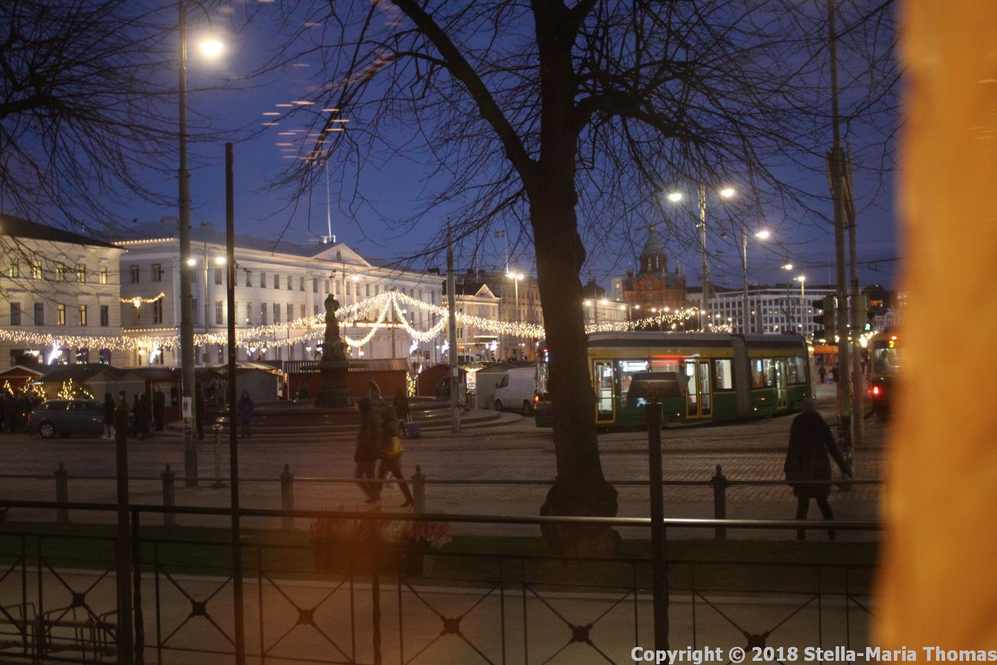 We decided we’d stop for a hot drink before hitting the market. The day light was almost gone by now, which meant that the Christmas lights were showing at their sparkling best. I really loved what had been done along Esplanadi; it was classy, tasteful and very attractive, none of your mad flashing multi-coloured lights, just gold and silver done with restraint.