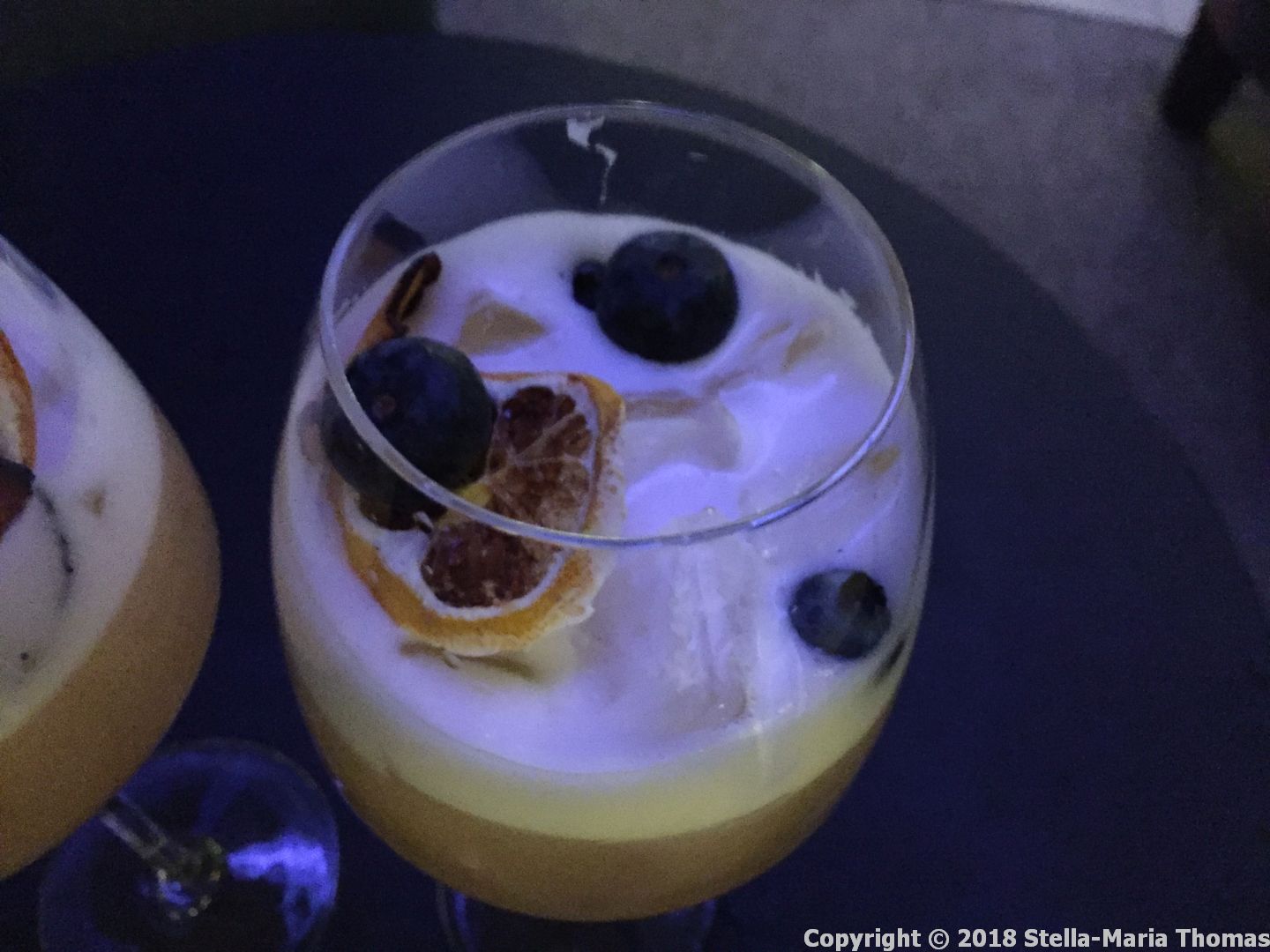 We headed back to the hotel where we spent an hour in the bar before heading out for dinner. The bar is great usually, but with Pikkijoulu (little Christmas) in full swing all over town they’d pulled the cocktail list and were offering a rather more limited selection because they only had one barman in place. The English barman offered a gin-based fruit sour made with “local” berries, and I persuaded him to make it with Finlandia vodka instead given that we don’t like gin. He wasn’t sure it would work; I was. I was right!